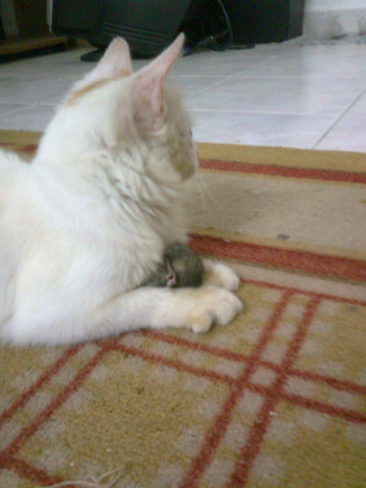 Oh yea, objek di atas x tipoo taw, memang ianya seekor tikus yang telah berjaya dicekup oleh MoMo. Tikus nie dah lemah nak lunyai dah 'dikerjakan Momo'..